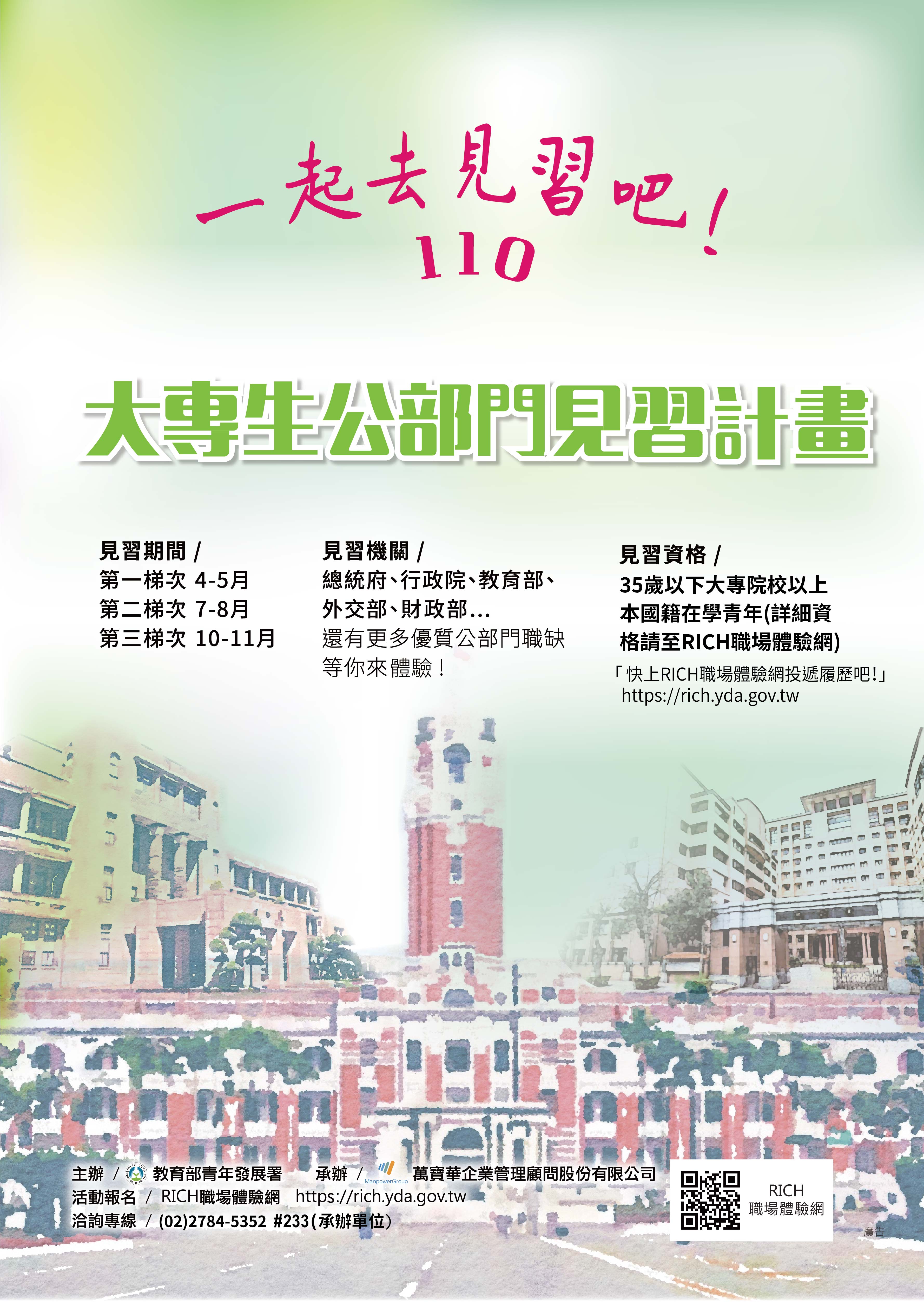 110大專生公部門見習計畫校園說明會~輔大(改為線上說明會,詳見行前通知)
