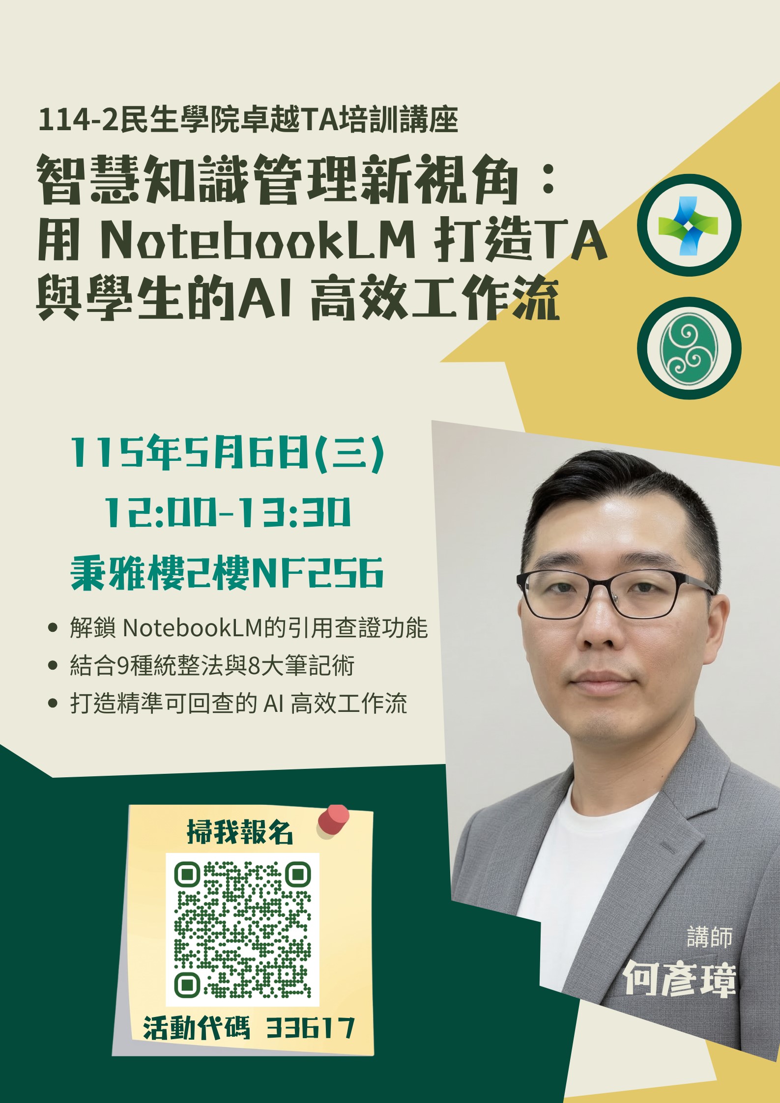 【民生學院114-2卓越TA培訓講座】智慧知識管理新視角:用 NotebookLM 打造TA與學生的AI 高效工作流